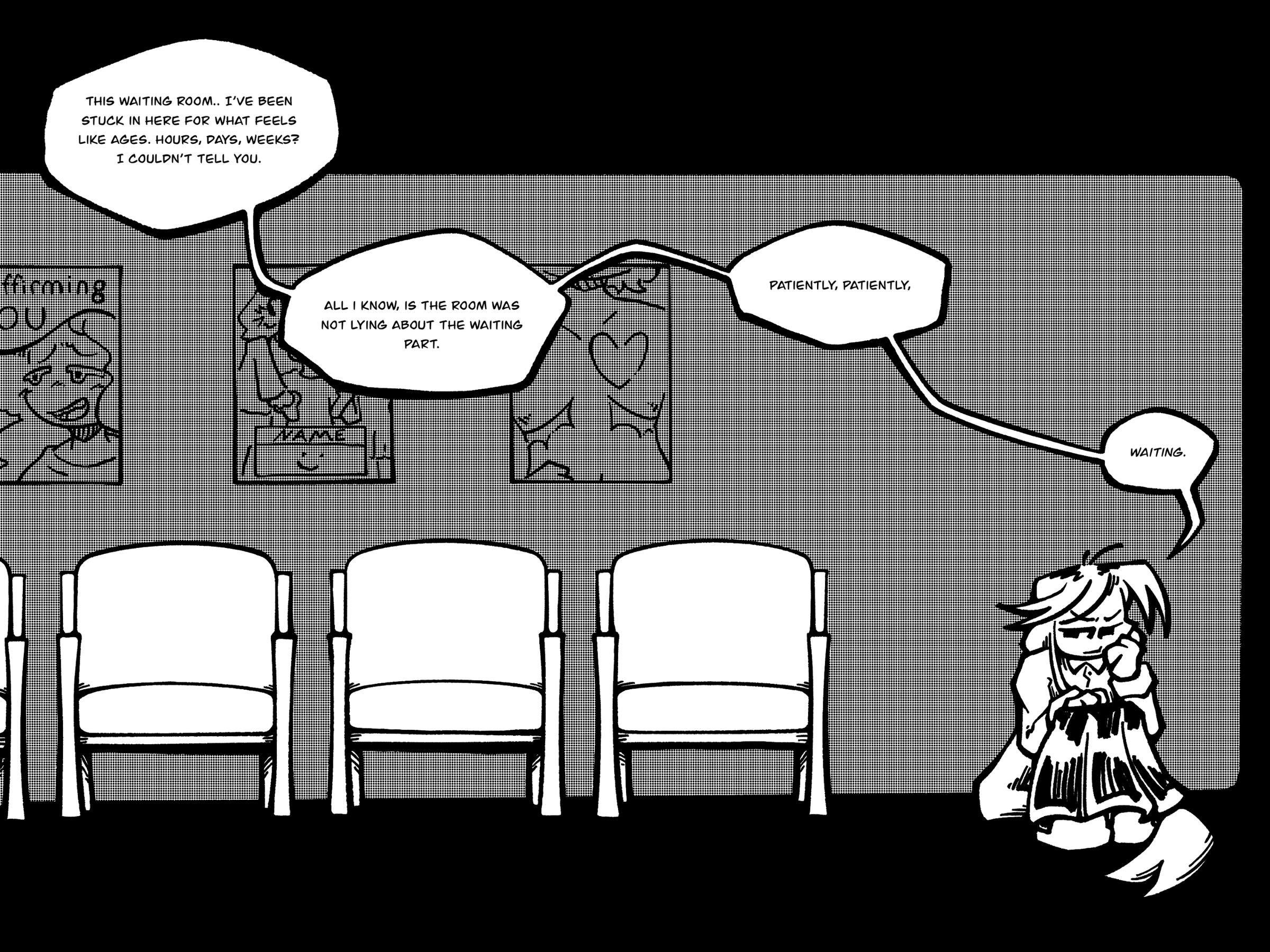 waiting room, a story about two girls waiting for… something? Starring Canny, somebody who allegedly has it all figured out, and Clara, a girl who’s doing her best. Read as they explore their patients with the world and their unfortunate predicament.